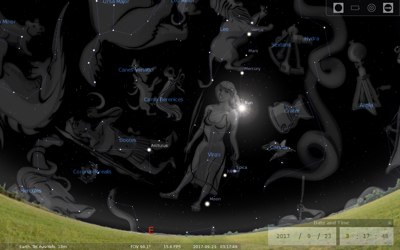 Projecting to the future (2017), which was a century after General Allenby took Jerusalem from the Ottoman Empire (Dec. 1917), we note that on Sept. 23, 2017 the heavens will portray the picture given in Revelation 12:1. The sun will be in Virgo, the Virgin, with the moon under her feet. She will be crowned by Venus, Mercury, and Mars positioned over her head. This will be reminiscent of the signs prior to Jesus’ birth.