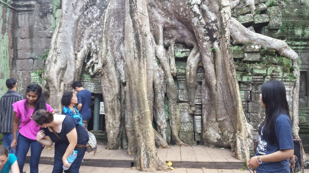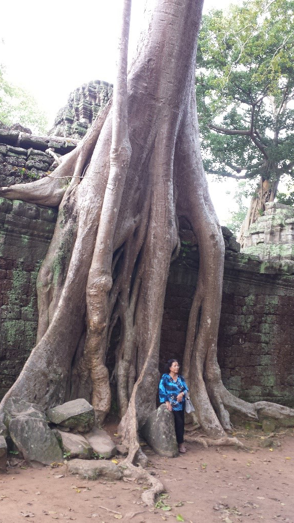The priests in this temple had planted many trees near the buildings and walls, because they revered nature. But in the end, nature took over, and because they could not bring themselves to cut down their sacred trees, they eventually had to abandon the temple and leave it in the hands of the trees.