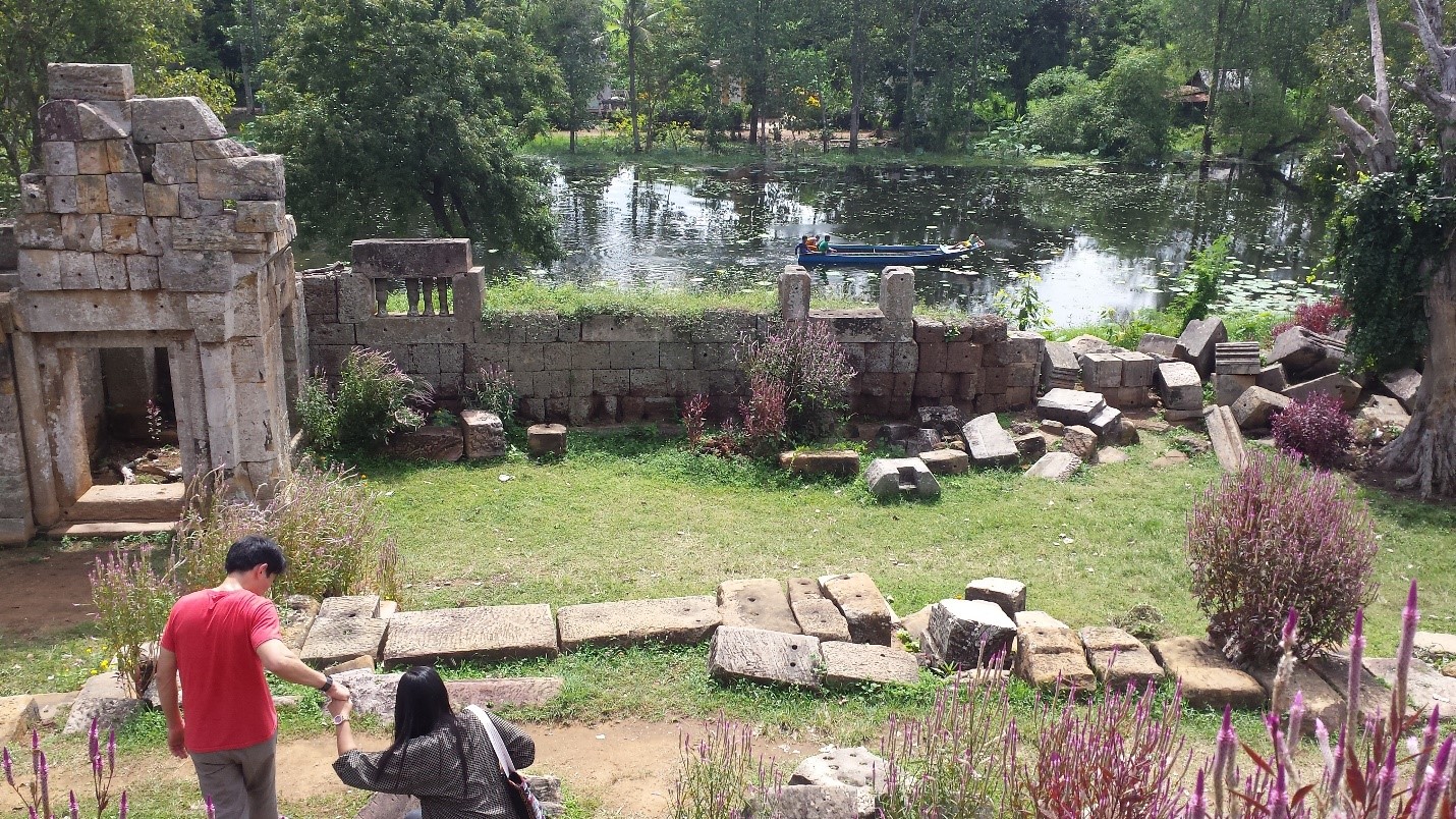 As we climbed down, you can see the remains of the old moat that once surrounded this temple. It is now just a lake on one side.