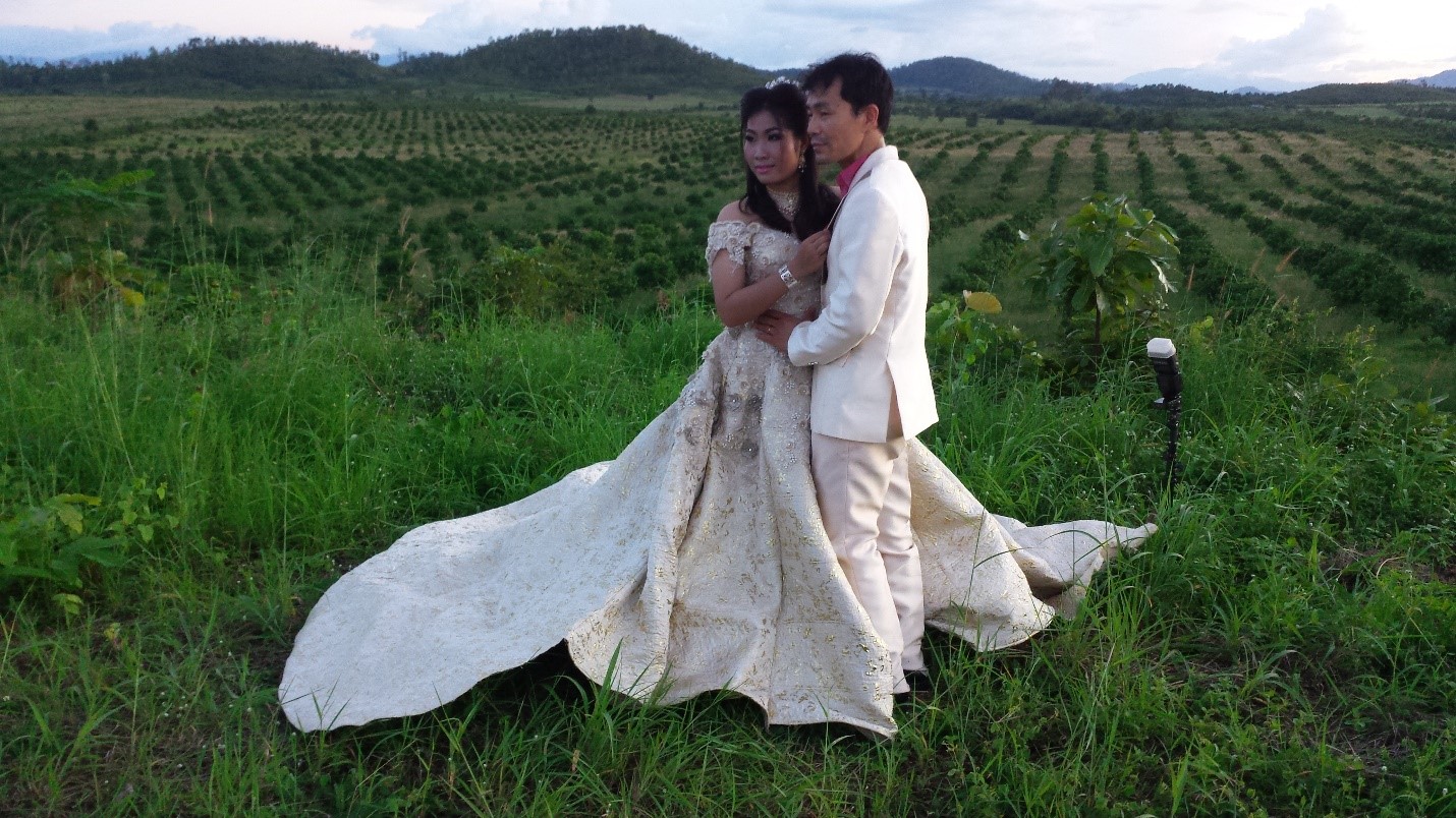 From there, we drove about an hour to a mango plantation, where the photographer took more pictures. This hill is a popular place for wedding pictures, so we had to wait our turn. You can see the mango trees in the background in the valley.