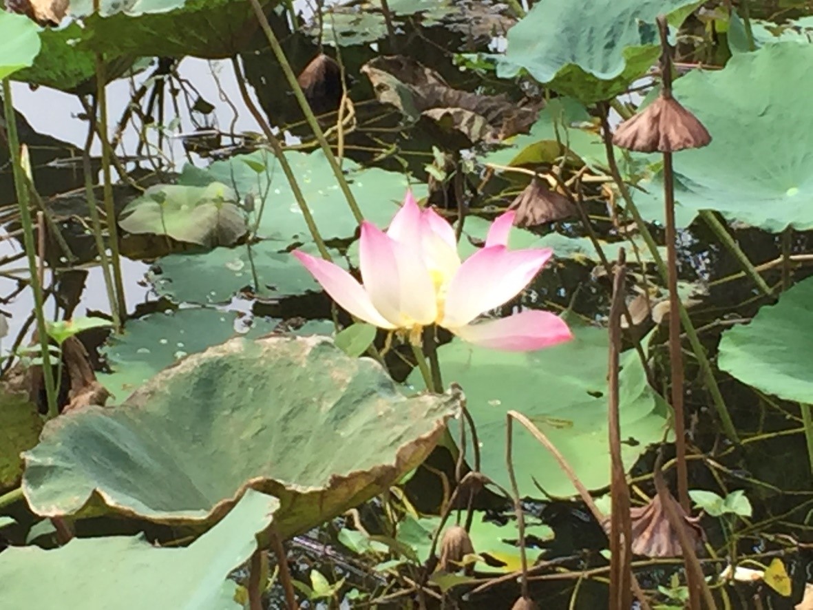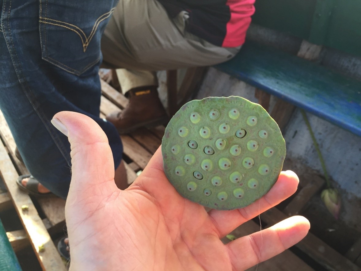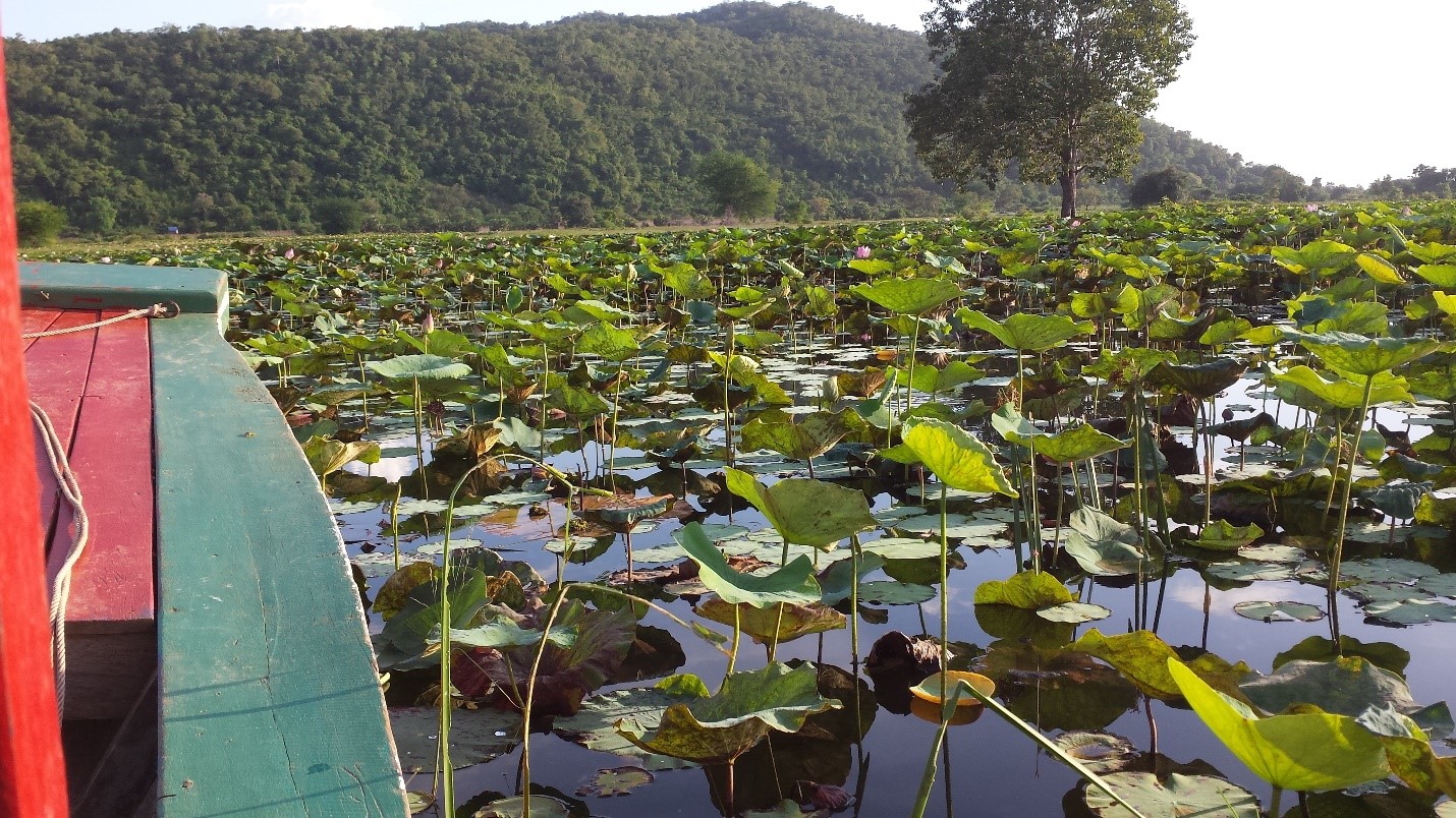 These pads also provide the people with pods having nutritious seeds to eat. Just dig out the seeds from the pods and pop them into your mouth. Note the big tree growing in the middle of the shallow part of the lake.