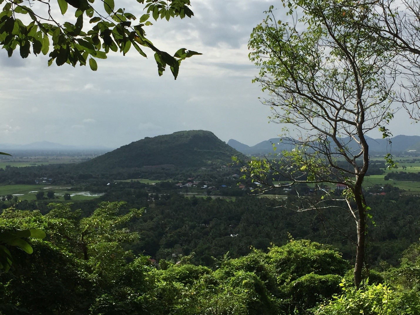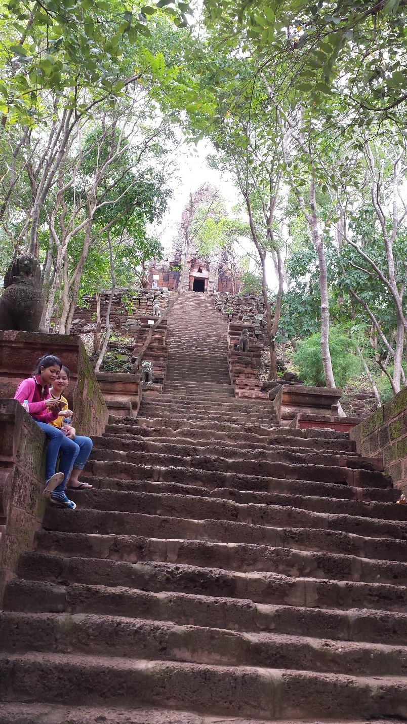 On November 14, while we were staying in Battambang, S---- and his fiancé took us to a nearby mountain that had been one of the prominent places in the killing fields. We had to walk up about 350 steps, which largely explains why I gained no weight after eating rice three times a day. The steps can be seen in the background as we approached.