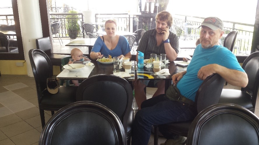 I think it was on our first trip to the mall, very early into the trip, that we were ascending the escalator, and a white woman carrying a baby tapped us on the shoulder, asking if we were Americans. She introduced herself as Brandi. It turned out that she and her husband Joshua were missionaries to the Philippines, and they had lived in Davao for the past 4½ years. They lived within walking distance to the mall, actually between our hotel and the mall. So it was not long before we got directions to their house and visited them.