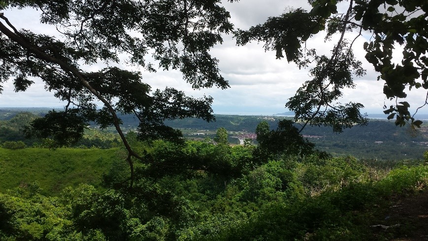 There are no picnic tables, but they sit on the ground and have their lunches. In this picture, the big tree is behind me, and in the far horizon you can see Davao City.