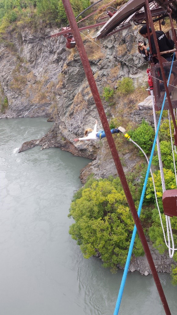 For Darla’s sake, we also stopped at a place along a river where she could do some bungy jumping. Although she is the adventurous type, she declined this time. It was too cold, and she didn’t want to get her hair wet. So we were content to watch others do it.
