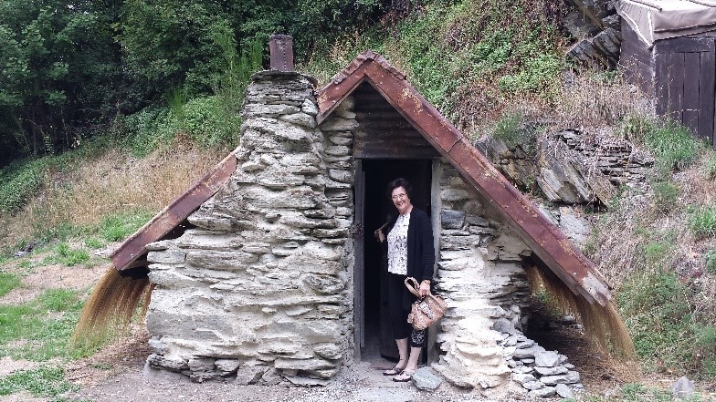 We decided to check the obituaries in the next town before taking the ride. And so we moved on, going to Arrowtown, another mining town in the 1800’s. It imported Chinese labor, as did so many mining companies, but the Europeans treated them quite badly, resenting their presence, even while depending upon their labor. We stopped along the river at the remnants of one of the Chinese settlements.