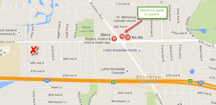 MAP IMAGE: TO 5415 69th Ave N., Brooklyn Center, MN (off I-694)