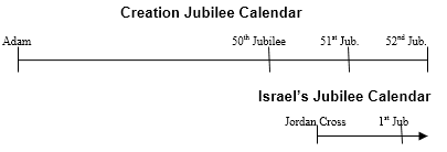 In other words, they entered the Promised Land 38 years after the 50th Jubilee from Adam. This was not even on a seventh year Sabbath. Hence, when their Kingdom calendar began, wherein they began to count rest years and Jubilees from their Jordan crossing, their reference point did not coincide with the start of a Jubilee cycle on the Creation Jubilee Calendar.