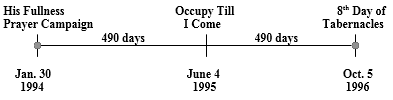 And so we were led to call for a prayer campaign on June 4, 1995 called “Occupy Till I Come.” The timing of this campaign was not only Pentecost that year, but it was also precisely 490 days after “His Fullness” prayer campaign (Jan. 30, 1994). In fact, it was also linked by a 490-day period to the 8th day of Tabernacles in 1996.