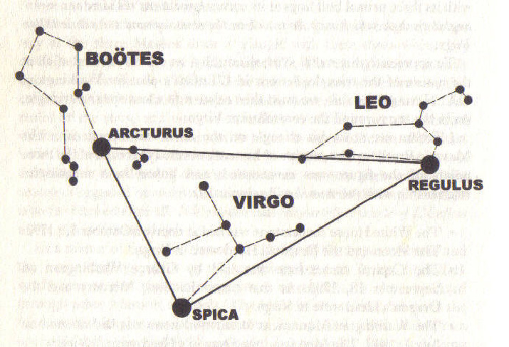 L’Enfant carefully planned for the federal city to manifest the star pattern formed by three stars (all of the first magnitude) surrounding Virgo. They are: Arcturus, Spica, and Regulus. These form almost a perfect right angled triangle with Virgo inside the triangle. These are pictured on page 256 of his book.