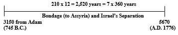 These dates begin the seven times of tribulation, or 7 x 360 years (2,520 years total). This is also 12 x 210 years, or one distress cycle per land-owning tribe in Israel. The first cycle ends in 1776, and the second in 1800. Hence, the long tribulation began to end with America’s founding in 1776 and the building of America’s capital city in 1800.
